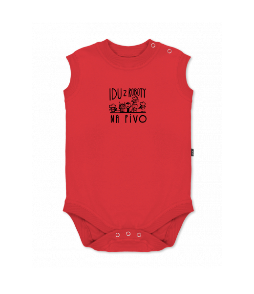 Baby body sleeveless with design for kid with design 1369 IDU Z ROBOTY NA PIVO in color RED