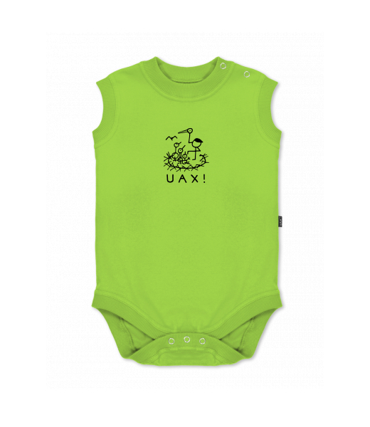 We make sustainable UAX clothing! - hand sewn in the Czech Republic uaxKids uaxAll productsBaby bodyBABY BODY SLEEVELESSdesign 1381 - ČÁPÍ HNÍZDOPARROT GREEN