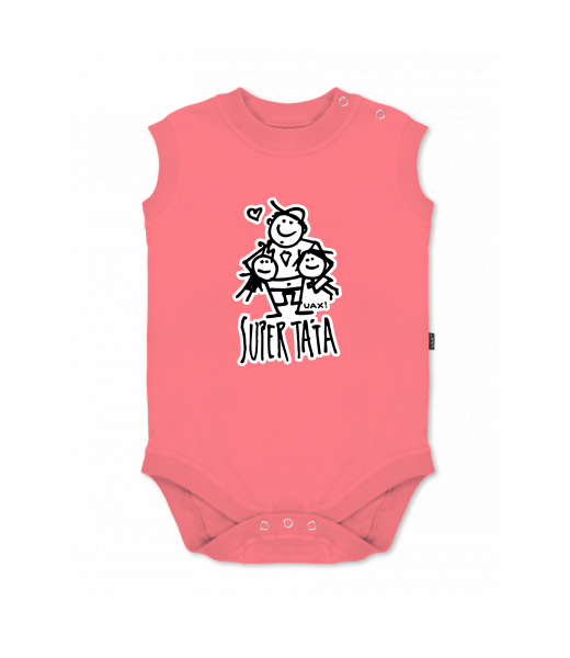 Baby body sleeveless with design for kid with design 1390 SUPER TÁTA in color LOSOSOVA