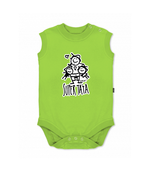 Baby body sleeveless with design for kid with design 1390 SUPER TÁTA in color PARROT GREEN