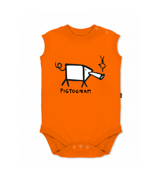 Baby body sleeveless with design for kid with design 367 PIGTOGRAM in color SIGNAL ORANGE
