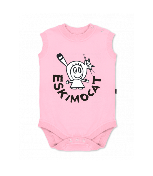 Baby body sleeveless with design for kid with design 375 ESKIMOCAT in color BABY PINK
