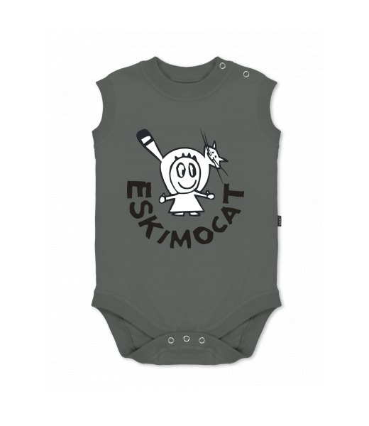 Baby body sleeveless with design for kid with design 375 ESKIMOCAT in color DARK GRAY