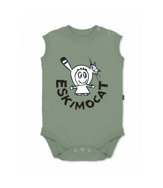 Baby body sleeveless with design for kid with design 375 ESKIMOCAT in color OLIVA