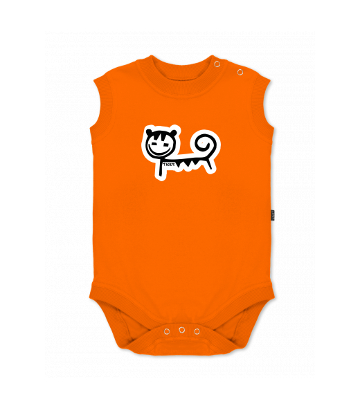 Baby body sleeveless with design for kid with design 476 TIGER in color SIGNAL ORANGE