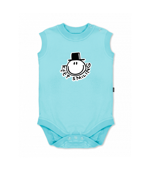 Baby body sleeveless with design for kid with design 517 KEEP SMILING in color PASTEL BLUE