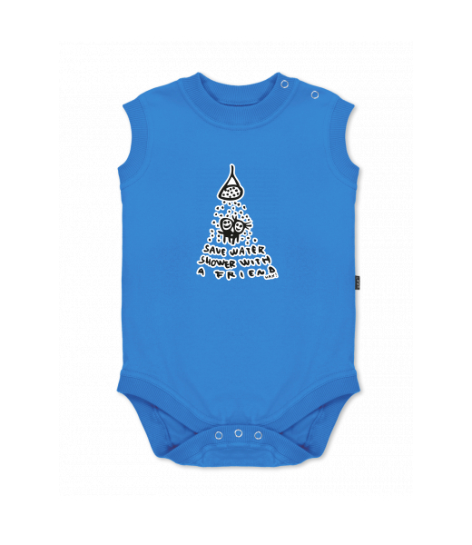 Baby body sleeveless with design for kid with design 519 SAVE WATER in color CAPRI BLUE