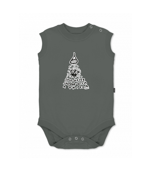 Baby body sleeveless with design for kid with design 519 SAVE WATER in color DARK GRAY