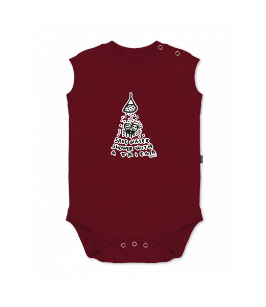 Baby body sleeveless with design for kid with design 519 SAVE WATER in color DARK RED