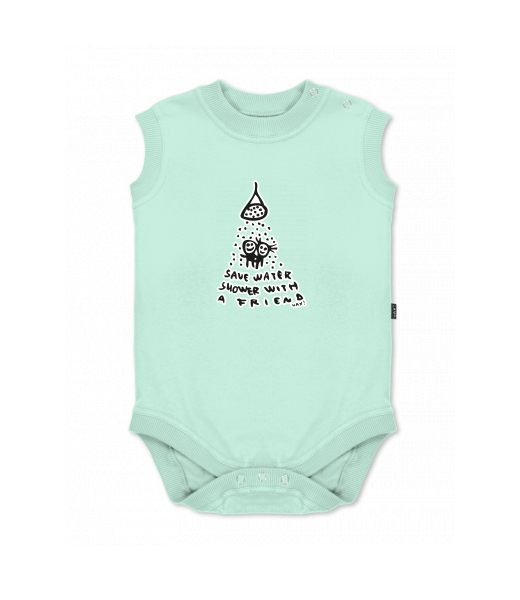 Baby body sleeveless with design for kid with design 519 SAVE WATER in color MINT