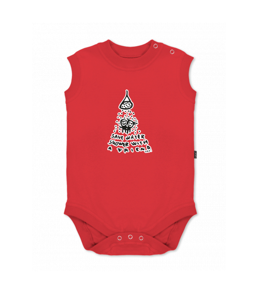 Baby body sleeveless with design for kid with design 519 SAVE WATER in color RED
