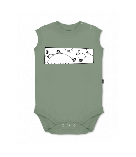 Baby body sleeveless with design for kid with design 55 CYCLOCOSMOS in color OLIVA