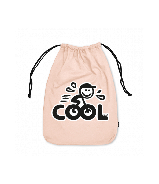Medium cotton pouch for kid with design 1169 COOL CYCLIST in color CAPPUCINO