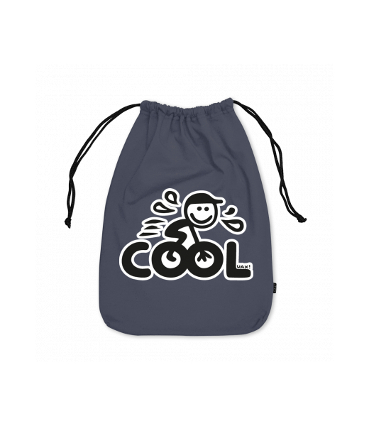 Medium cotton pouch for kid with design 1169 COOL CYCLIST in color GRAY INK