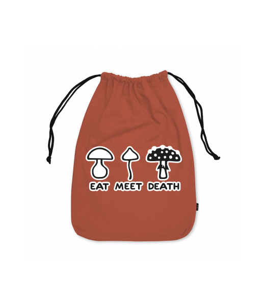 Medium cotton pouch for kid with design 1177 EAT MEET DEATH in color TERRA