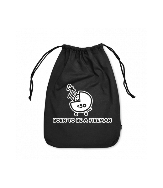 Medium cotton pouch for kid with design 1184 BORN TO BE A FIREMAN in color BLACK