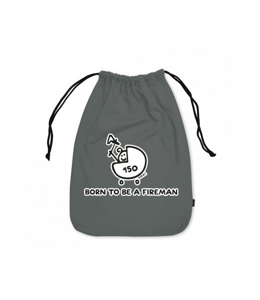 Medium cotton pouch for kid with design 1184 BORN TO BE A FIREMAN in color DARK GRAY