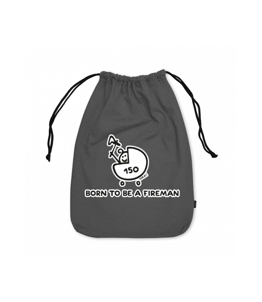 Medium cotton pouch for kid with design 1184 BORN TO BE A FIREMAN in color GRAFIT