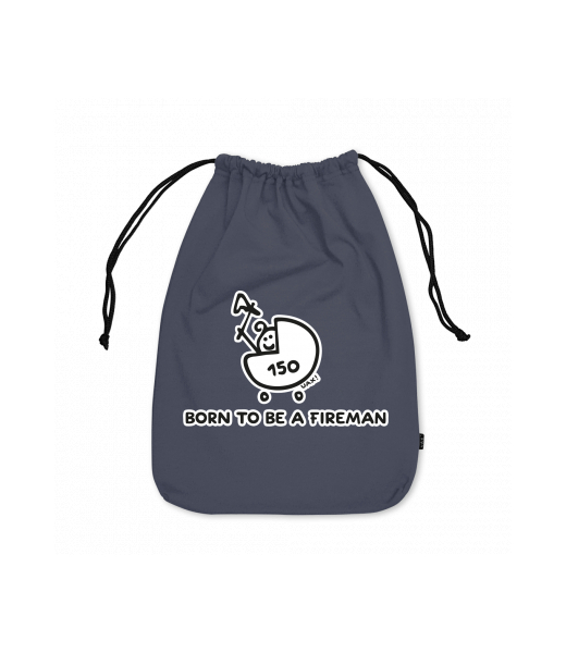 Medium cotton pouch for kid with design 1184 BORN TO BE A FIREMAN in color GRAY INK