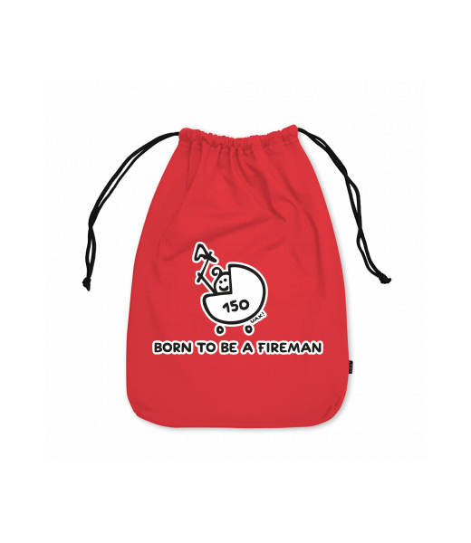 Medium cotton pouch for kid with design 1184 BORN TO BE A FIREMAN in color RED