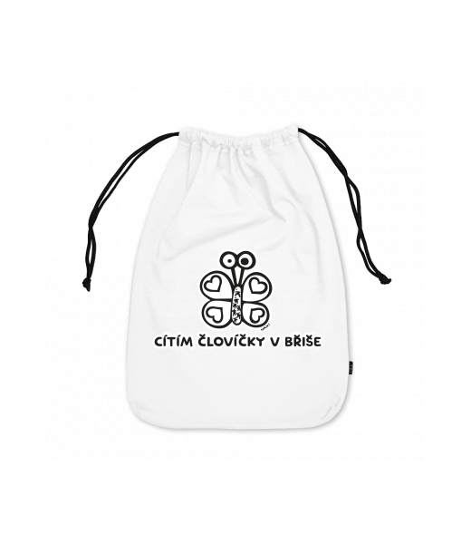 Medium cotton pouch for kid with design 1188 CÍTÍM ČLOVÍČKY V BŘIŠE in color WHITE