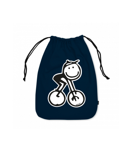 Medium cotton pouch for kid with design 1202 BIKE MAN in color DARK NAVY