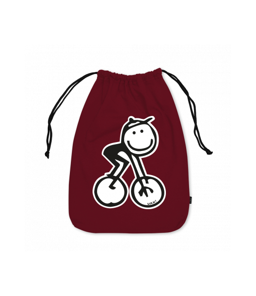 Medium cotton pouch for kid with design 1202 BIKE MAN in color DARK RED