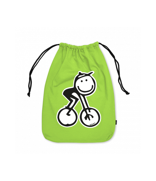 Medium cotton pouch for kid with design 1202 BIKE MAN in color PARROT GREEN