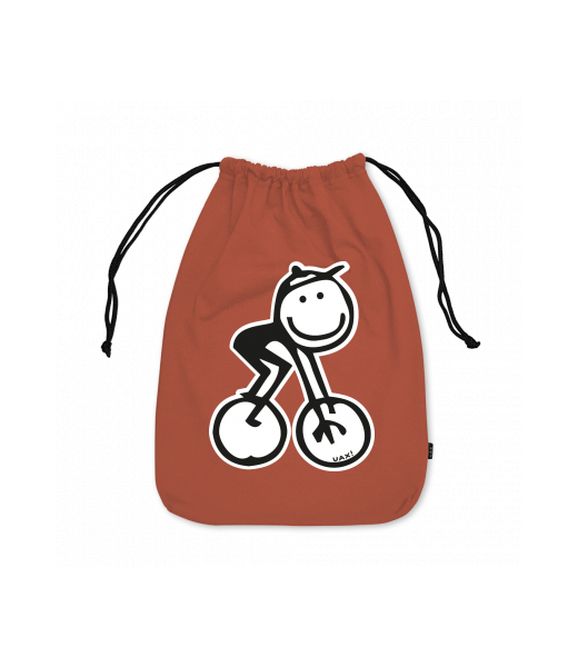 Medium cotton pouch for kid with design 1202 BIKE MAN in color TERRA