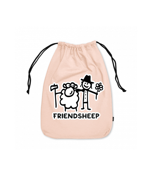 Medium cotton pouch for kid with design 1205 FRIENDSHEEP in color CAPPUCINO