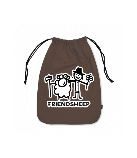 Medium cotton pouch for kid with design 1205 FRIENDSHEEP in color CHESTNUT