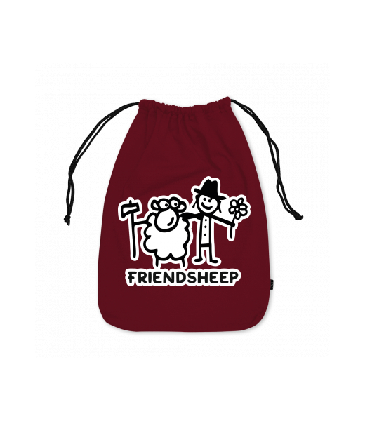 Medium cotton pouch for kid with design 1205 FRIENDSHEEP in color DARK RED