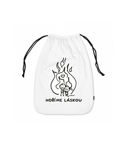 Medium cotton pouch for kid with design 1208 HOŘÍME LÁSKOU in color WHITE
