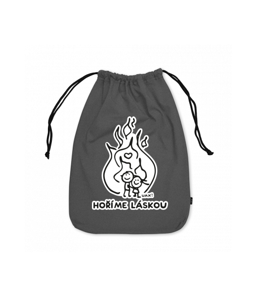 We make sustainable UAX clothing! - hand sewn in the Czech Republic uaxKids uaxAll productsBags and sacksMEDIUM COTTON POUCHdesign 1208 - HOŘÍME LÁSKOUGRAFIT