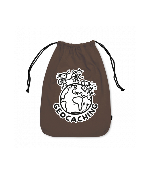 Medium cotton pouch for kid with design 1215 GEOCACHING in color CHESTNUT