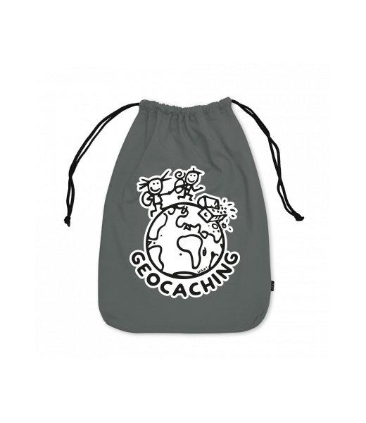 Medium cotton pouch for kid with design 1215 GEOCACHING in color DARK GRAY