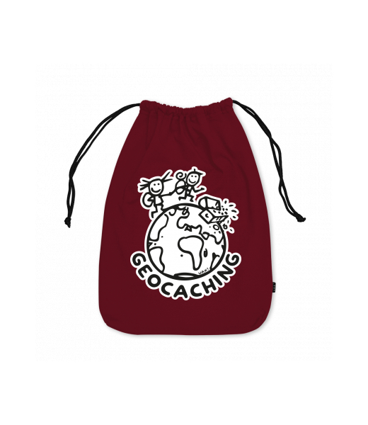 Medium cotton pouch for kid with design 1215 GEOCACHING in color DARK RED