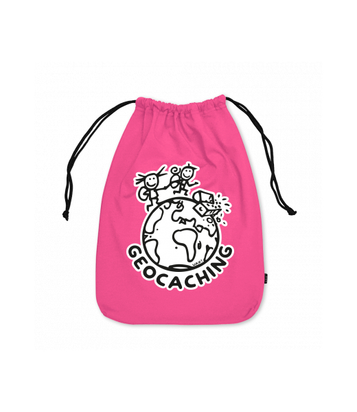 Medium cotton pouch for kid with design 1215 GEOCACHING in color INDIAN LILA