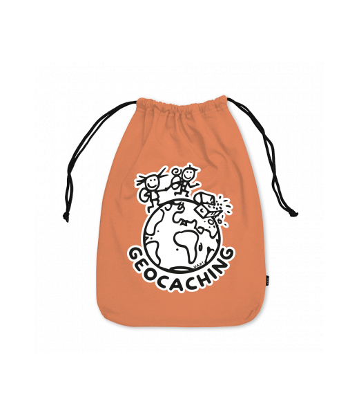 Medium cotton pouch for kid with design 1215 GEOCACHING in color MANDARIAN ORANGE