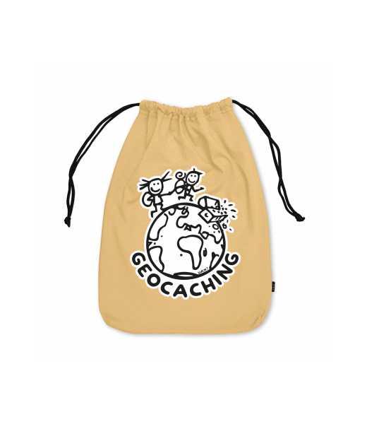 Medium cotton pouch for kid with design 1215 GEOCACHING in color MUSTARD