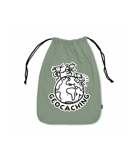 Medium cotton pouch for kid with design 1215 GEOCACHING in color OLIVA