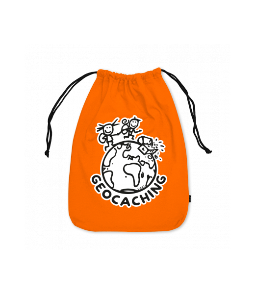 Medium cotton pouch for kid with design 1215 GEOCACHING in color SIGNAL ORANGE