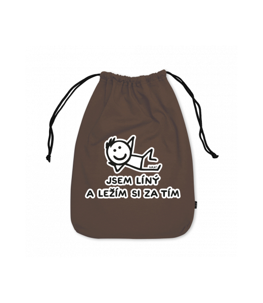 Medium cotton pouch for kid with design 1217 JSEM LÍNÝ A LEŽÍM SI ZA TÍM in color CHESTNUT