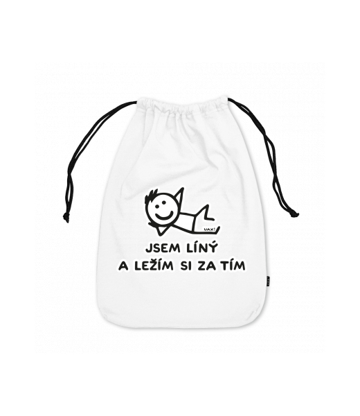 We make sustainable UAX clothing! - hand sewn in the Czech Republic uaxKids uaxAll productsBags and sacksMEDIUM COTTON POUCHdesign 1217 - JSEM LÍNÝ A LEŽÍM SI ZA TÍMWHITE
