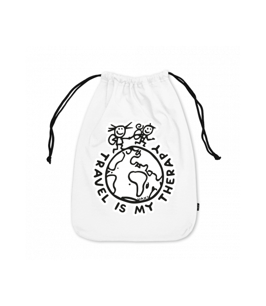 Medium cotton pouch for kid with design 1240 TRAVEL IS MY THERAPY in color WHITE