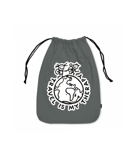 We make sustainable UAX clothing! - hand sewn in the Czech Republic uaxKids uaxAll productsBags and sacksMEDIUM COTTON POUCHdesign 1240 - TRAVEL IS MY THERAPYDARK GRAY