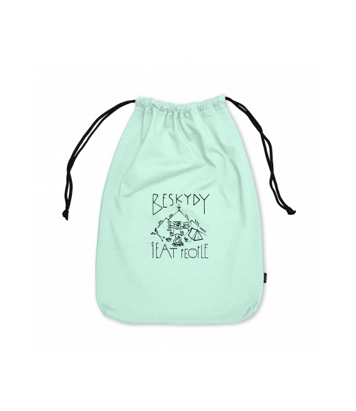 Medium cotton pouch for kid with design 1241 I EAT PEOPLE BESKYDY in color MINT