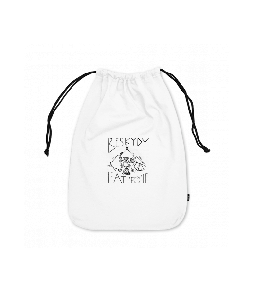 Medium cotton pouch for kid with design 1241 I EAT PEOPLE BESKYDY in color WHITE