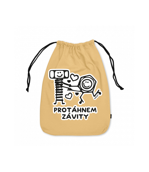 Medium cotton pouch for kid with design 1242 PROTÁHNEM ZÁVITY in color MUSTARD