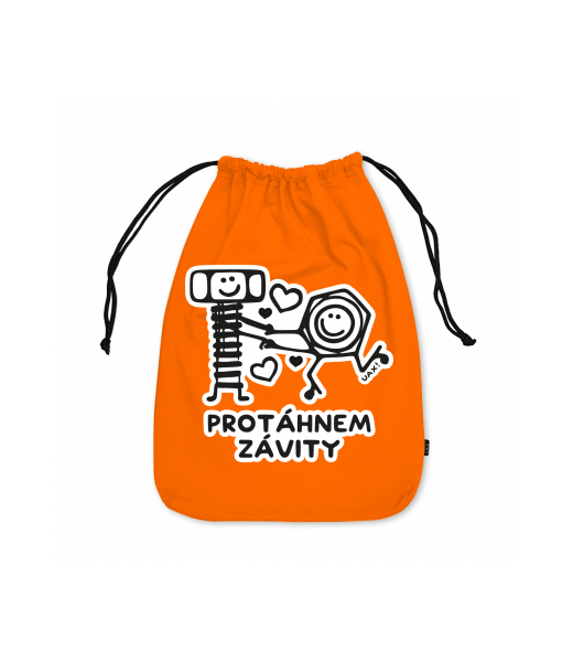 Medium cotton pouch for kid with design 1242 PROTÁHNEM ZÁVITY in color SIGNAL ORANGE